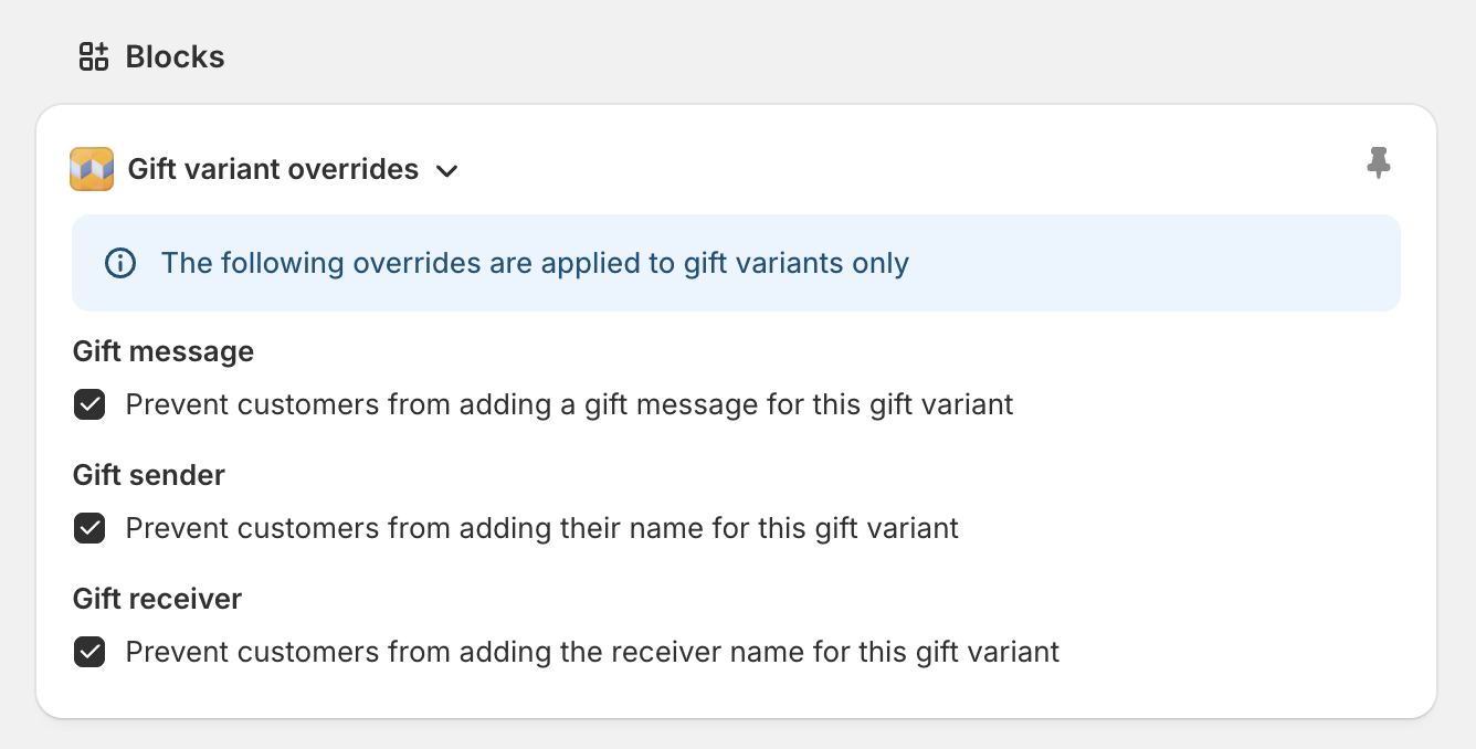 - Under Gift Variant Overrides, you'll see three checkboxes. Select all three.