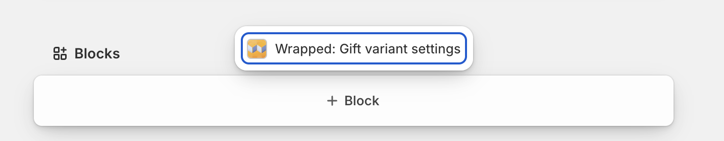 - Scroll down to the bottom of the Variant Editor, and press "+ Block", and add "Wrapped: Gift variant settings"