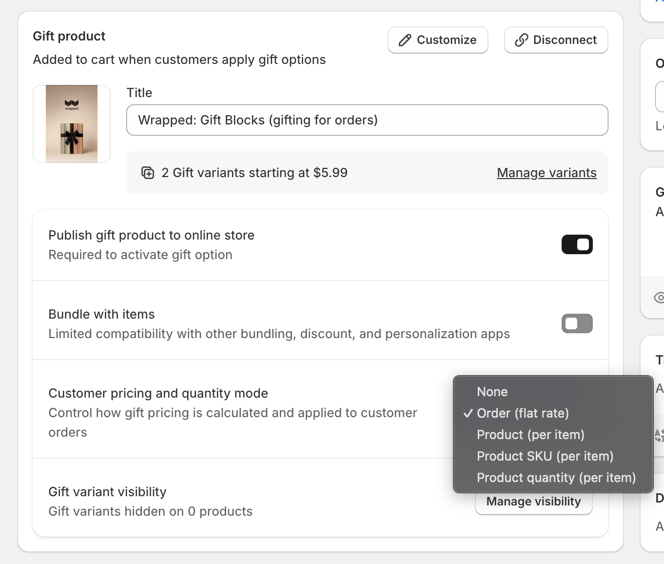 The price mode is available when the gift option has a connected gift product.